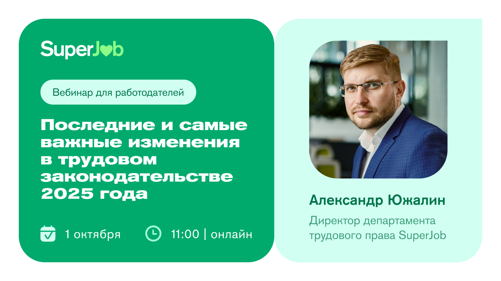 Спикер — Александр Южалин, директор департамента трудового права SuperJob.